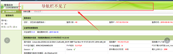 網站登錄后臺不出現上面的導航,是什么原因?