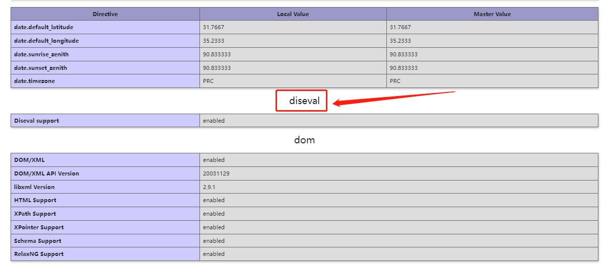 phpinfo()輸出,可以看到組件diseval已啟用,表示配置成功
