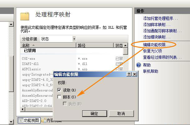2) iis7.0/7.5 取消目錄腳本執(zhí)行權(quán)限