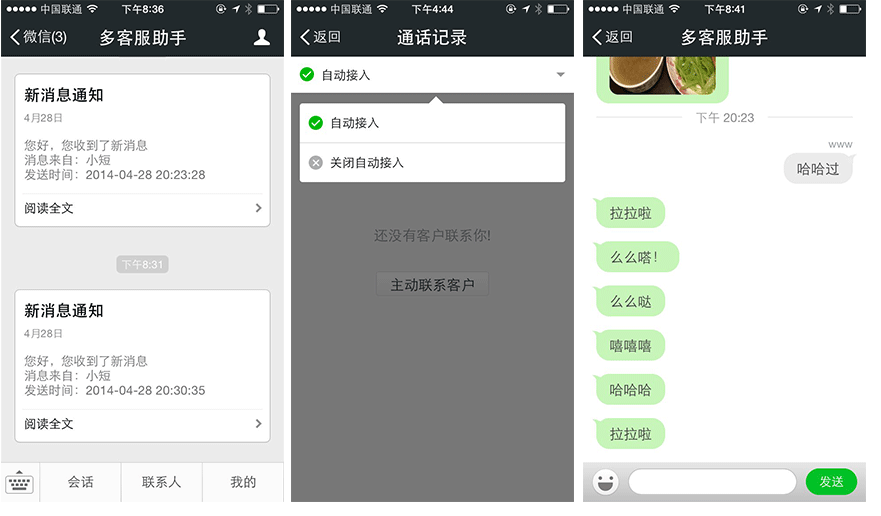 3、在微信上使用多客服接待