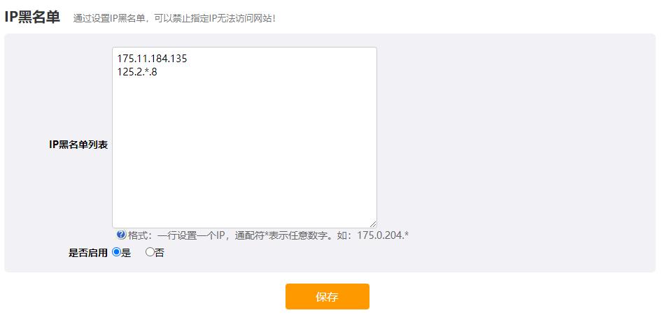 IP黑名單插件主要用于禁止指定的IP訪問(wèn)網(wǎng)站前臺(tái)頁(yè)面,僅對(duì)網(wǎng)站前臺(tái)頁(yè)面有效,對(duì)網(wǎng)站后臺(tái)無(wú)效(網(wǎng)站后臺(tái)支持IP白名單設(shè)置,請(qǐng)?jiān)凇驹O(shè)置】-【其他設(shè)置】里設(shè)置IP白名單)