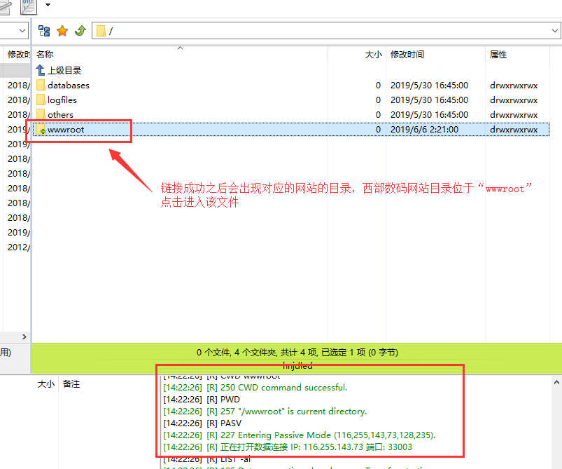 3.找到對應(yīng)的存放網(wǎng)站的目錄“西部空間”網(wǎng)站目錄位于WWWROOT根目錄下